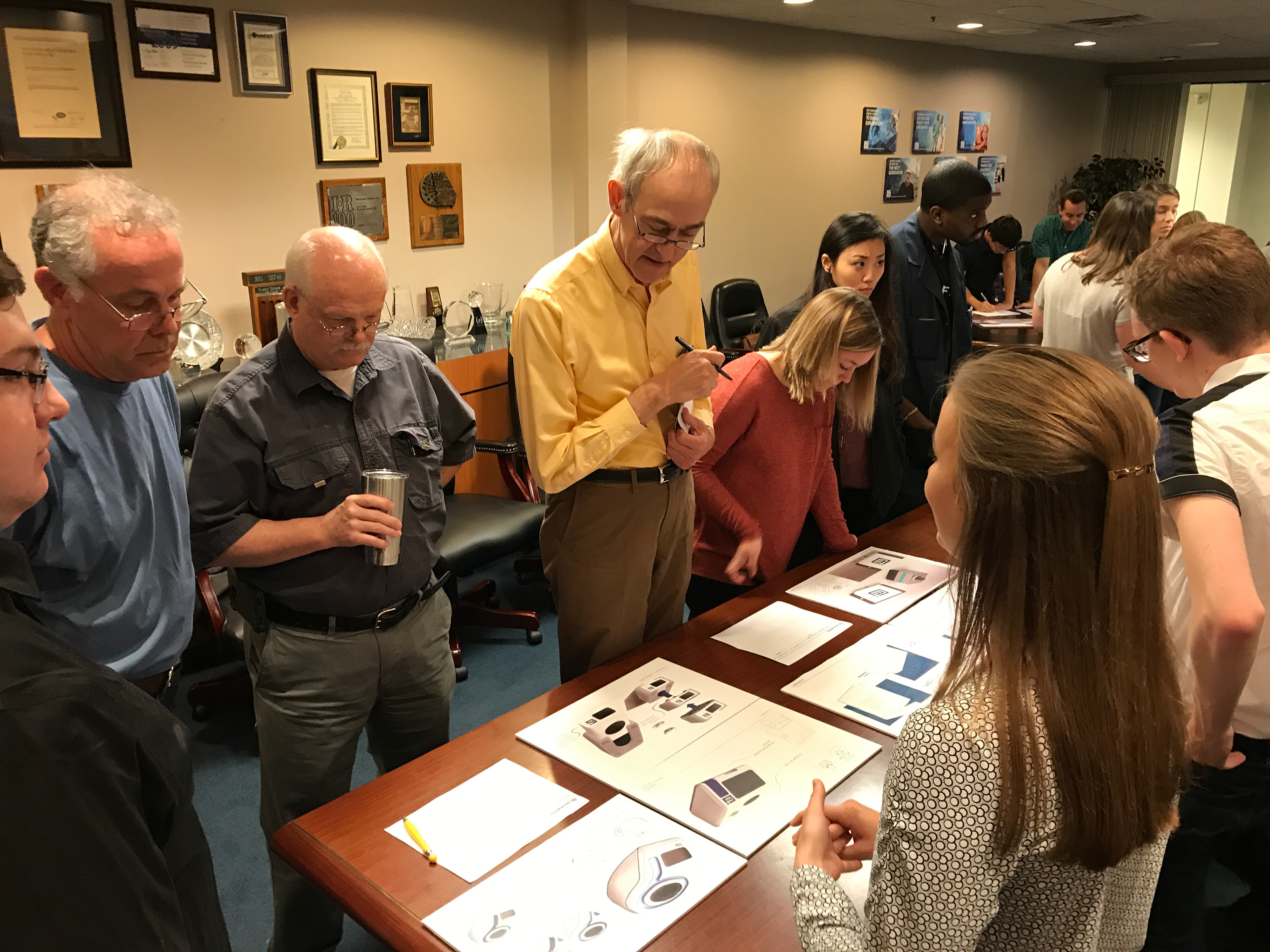 After developing our 3 distinct concepts we once again visited Micromeretics with our studio to get feedback that would help us refine our direction moving forward. We received a mountain of valuable feedback from a variety of people at the company from engineering and design to machining and service.