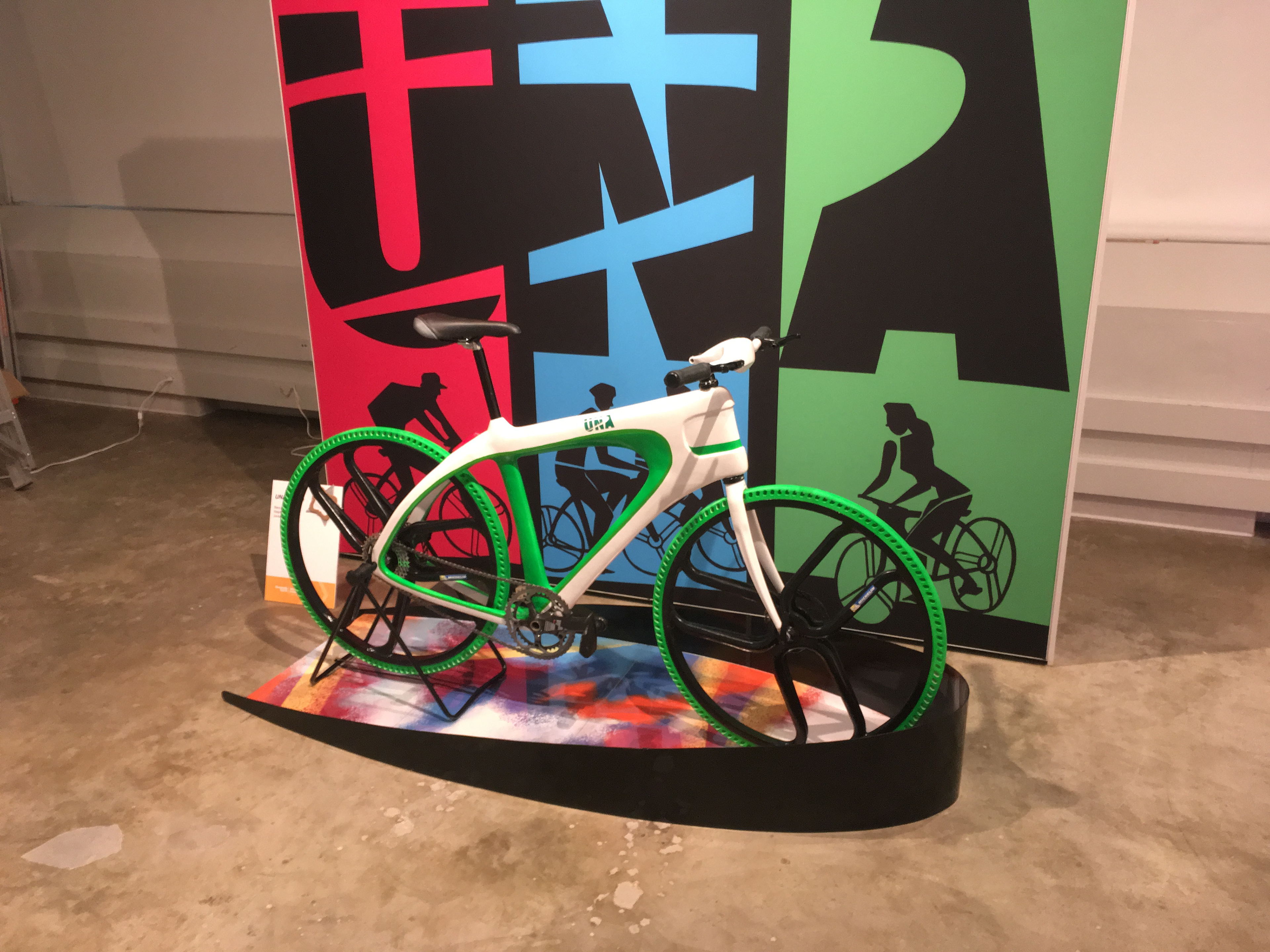 We created full-size model of our bike using as many real bicycle components as possible. The frame and wheels were made out of wood using a CNC router and the data from our CAD model. Other parts like the taillight and handlebars were 3D-printed or hand modeled out of wood or foam. Once painted and finished, The model was displayed at the 2018 Georgia Tech Launchpad event, where the UNA project won a silver Industry Choice Award.